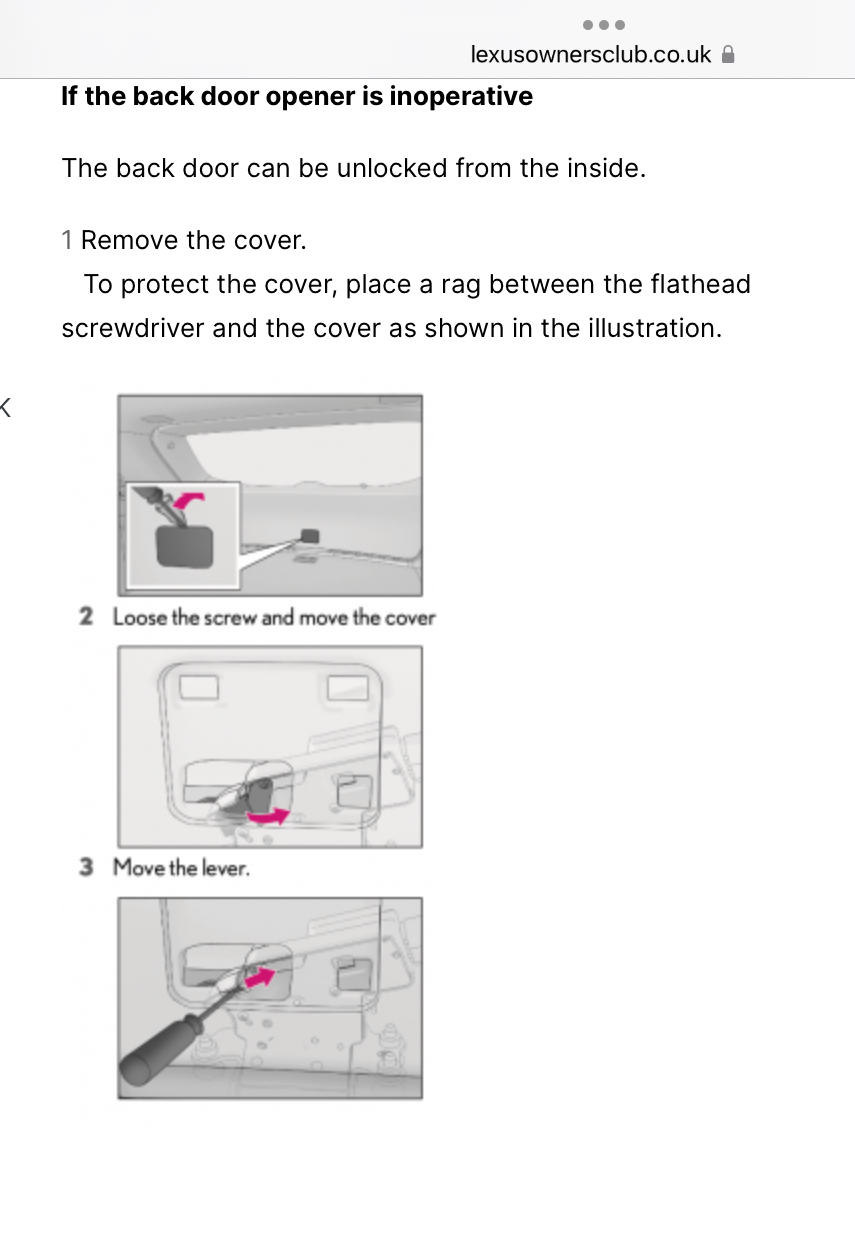 Als je van binnen onder op de achterklep kijkt, zie je dan een afgedekte uitsparing in de bekleding? Zo ja, dan zou je deze eruit kunnen wippen en zo bij het slot komen. Of dat zo bij de UX zit weet ik niet, maar ik zag dat bij andere type Lexus. De laatste afbeelding is m.i. van een UX