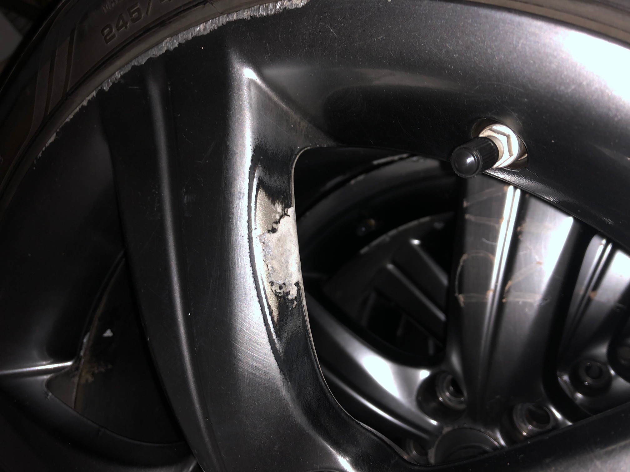 Velgen hebben wel wat beschadigingen en lak bobbelt los op sommige plekjes. Daarom voor een laag prijsje weg:
