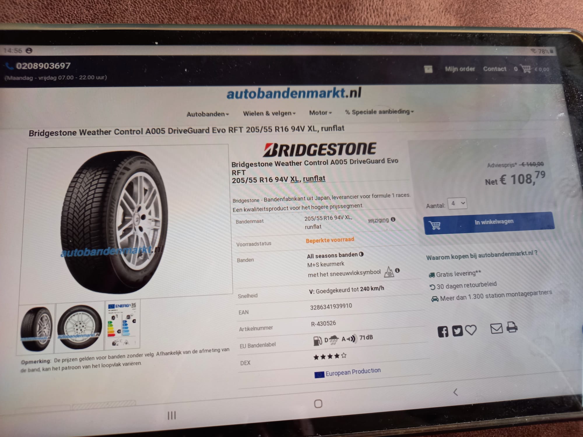 Maar omdat ik geen reservewiel heb, keek ik ook bij het run flat assortiment en zag ik ik Bridgestone Weater Control Drive Guard.