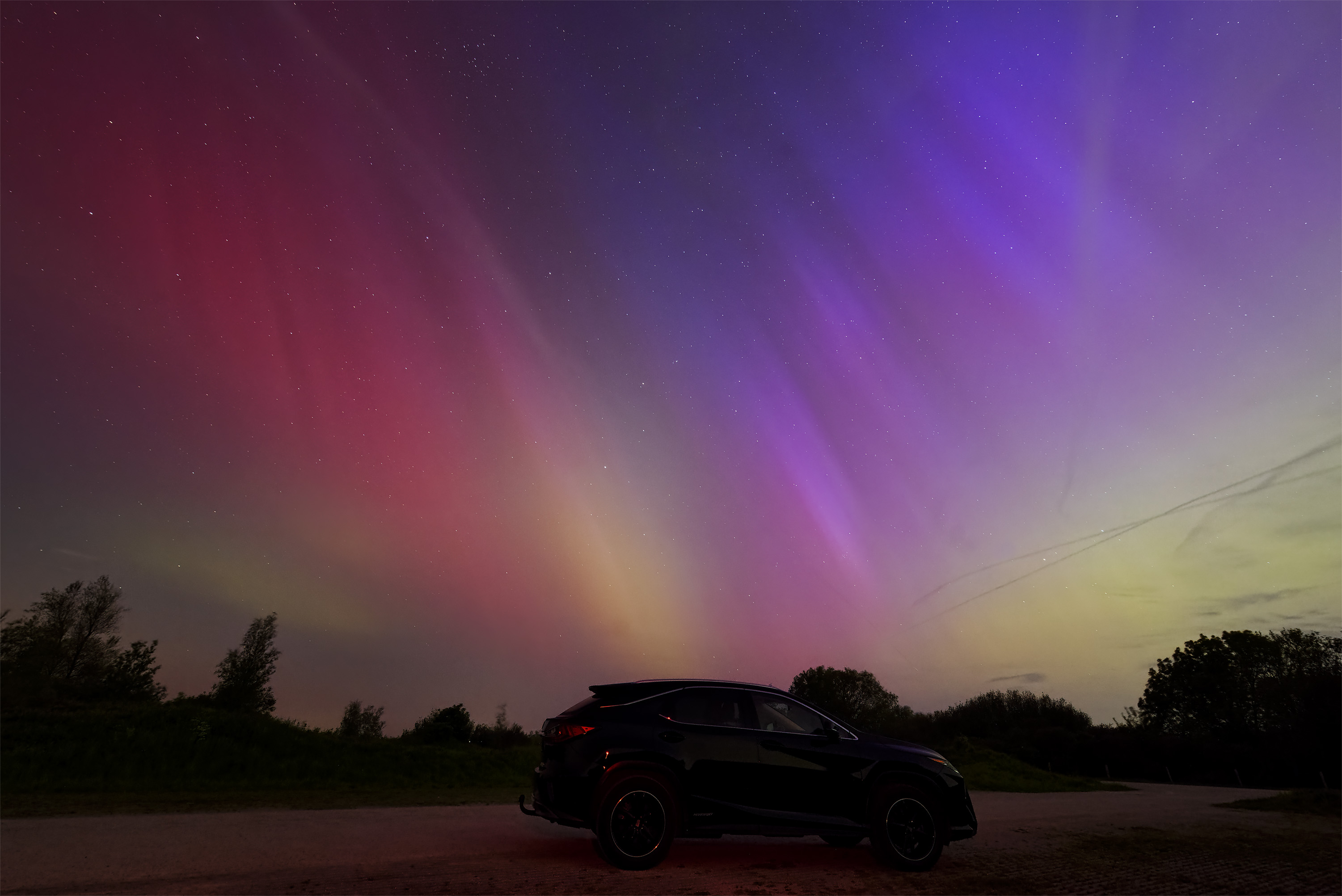 Gisteravond / afgelopen nacht heb ik een foto van mijn auto gemaakt die ik absoluut nooit had verwacht, en die boven verwachting mooi is geworden. Ik presenteer u: de Lexus RX 450h onder het poollicht.