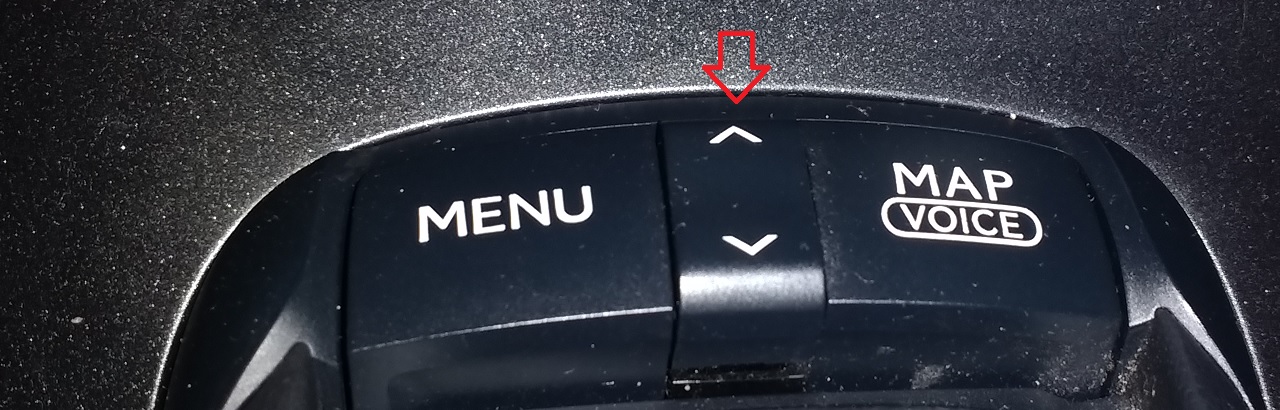 - knopje omhoog/beneden (zeg maar V en ^), naast de knoppen 'menu' en 'map' op de muis: