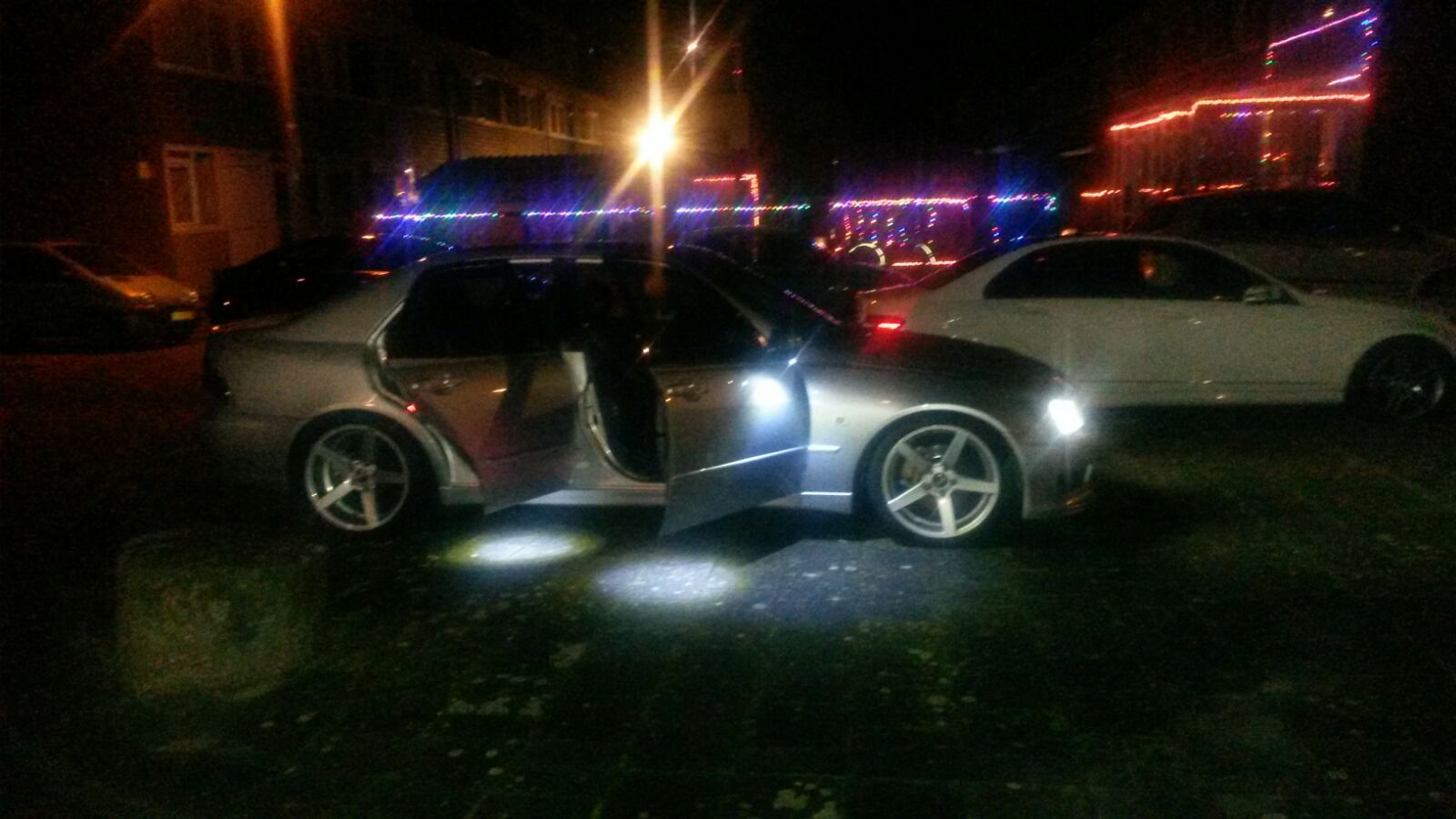 Bij het unlocken van de auto, klappen de spiegels uit en gaan de puddle lights samen met de angel eyes aan.