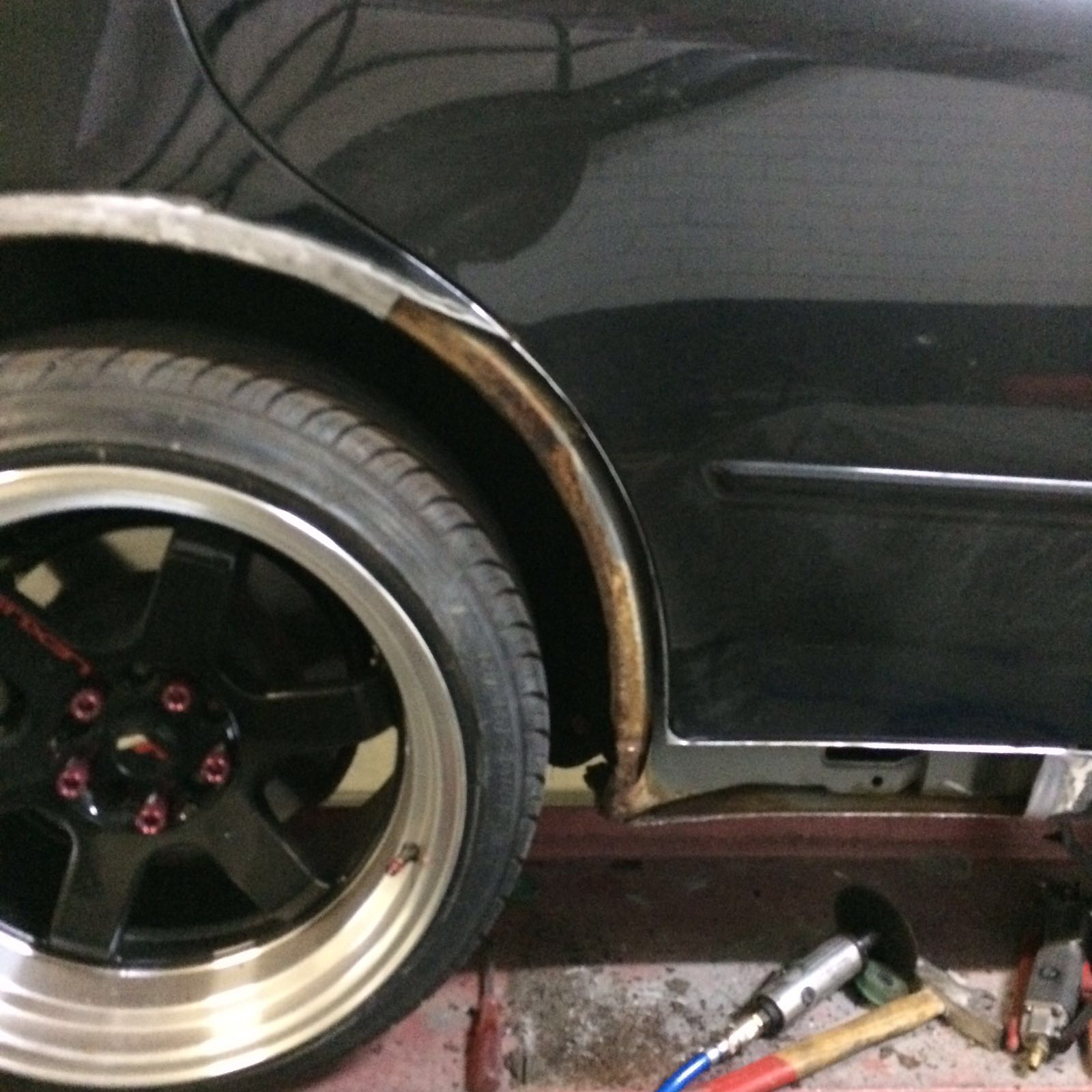 Wielkasten achter worden gelijk aan gepast op de velgen en er komen nog widebody fenders op omchet verschil op te vangen van de velgen.