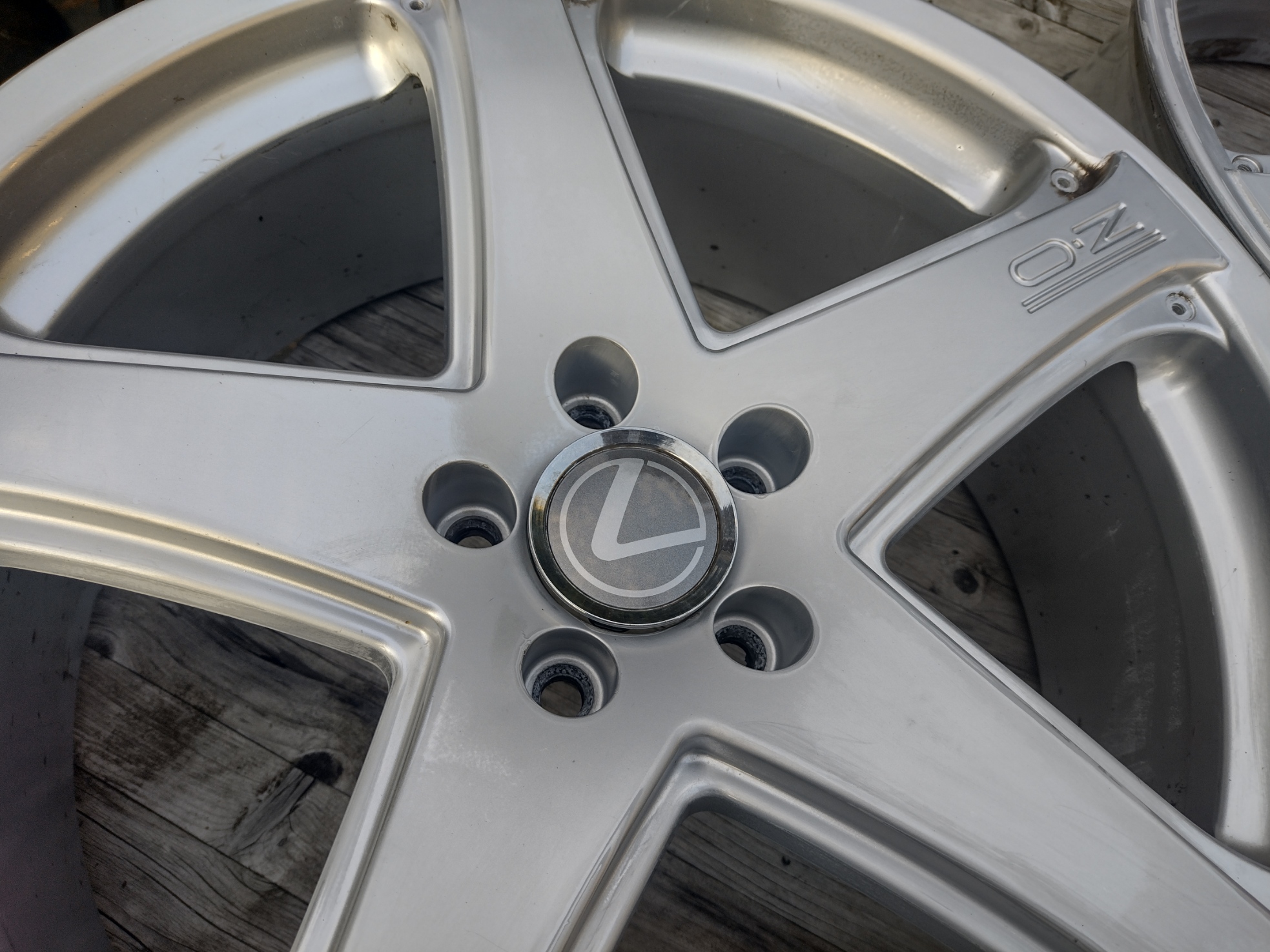 Prachtig!Omdat het OZ logo al in de spaak te zien is, heb ik de naafkapjes voorzien van het Lexus logo. De achtergrond is medium grijs metallic gemaakt, en het logo zilver metallic. Net subtiel te zien.