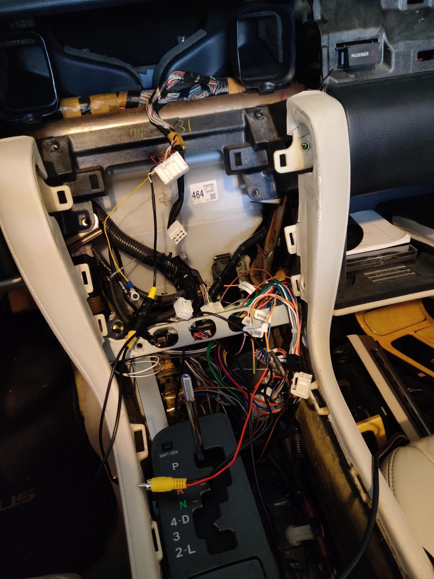 Voor het inbouwen van een aftermarket radio was heel wat bekabeling nodig. Ik heb het ook mogelijk gemaakt om het scherm van de Android radio te kunnen spiegelen op het navigatiescherm erboven (terwijl de originele navigatie ook nog gebruikt kan worden).