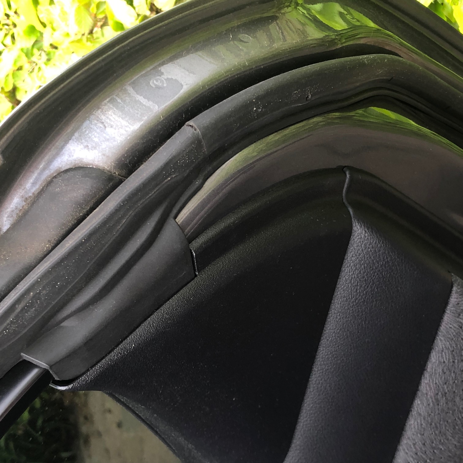 Nu zag ik net, voordat ik hem ging wassen, dat beide achterdeurrubbers beginnen te scheuren. Het deurrubber begint op een lasnaad open te staan. Het speelt zich af bij beide achterdeuren.