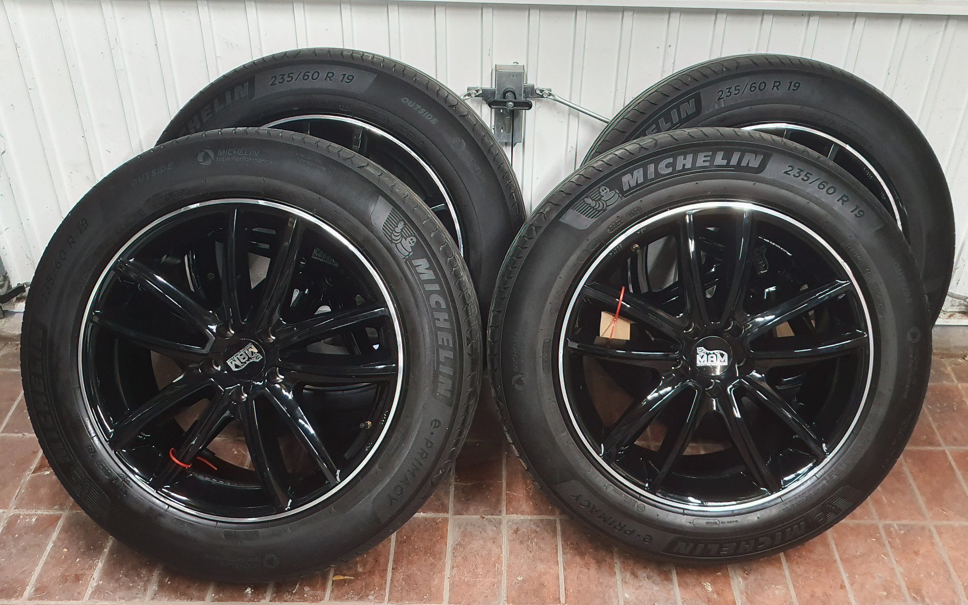 Banden: Michelin e-Primacy 235/60, profieldieptes 4.6 / 4.6 / 4.2 / 4.0 mm.