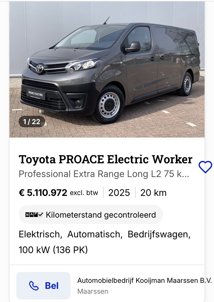 Paniekje Stamgast 1 sep 2024 1.252 1.122 113 donderdag om 19:53 #721 De duurste auto op Autotrack is een Toyota , een busje zelfs . Bijlagen IMG_4412.jpeg 185,9 KB · Weergaven: 25 Waarderingen: Jan v S, quattrootje, HondaFan en nog 2 andere personen