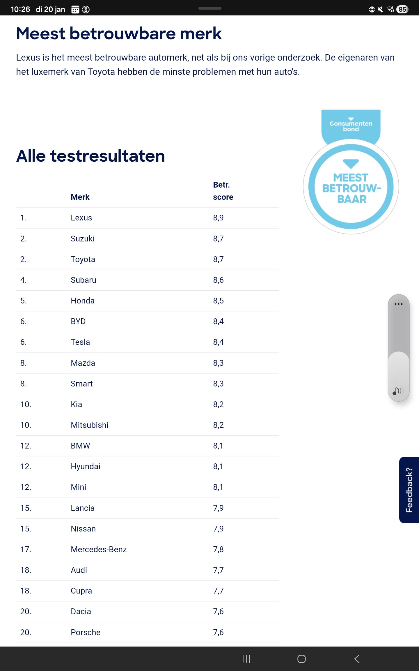 Altijd leuk om te zien, mijn vrienden weten dat ik groots Toyota en Lexus fan ben. En die zitten dan altijd te zeggen dat hun golfje nog nooit kapot is gegaan om te gallen. Zulke resultaten zijn dan wel erg leuk om te zien met Volkswagen op plek 25.Wellicht een beetje burgerlijk nieuws maar voor de kenners niets nieuws