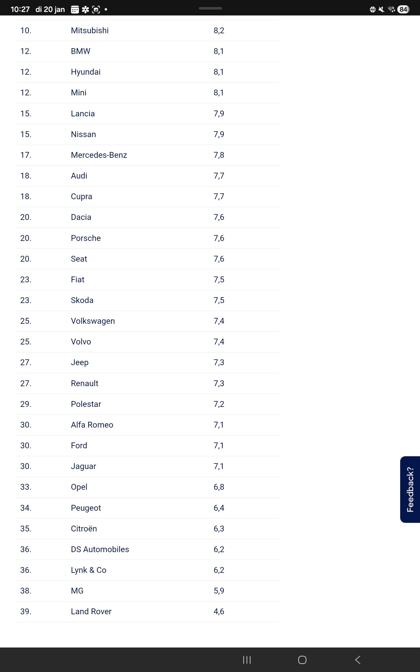 Dan kun je zeggen dat ze (volgens de statistieken) veel geluk hebben. En dan zeg je daarna: “Geluk is met de domme”En die zitten dan altijd te zeggen dat hun golfje nog nooit kapot is gegaan om te gallen. Zulke resultaten zijn dan wel erg leuk om te zien met Volkswagen op plek 25