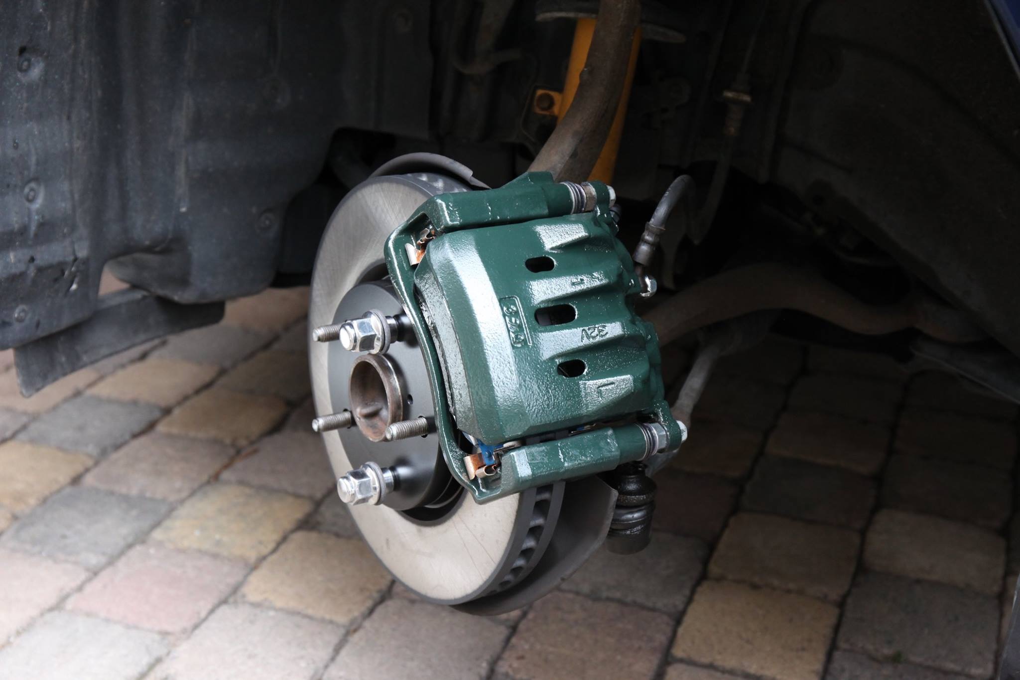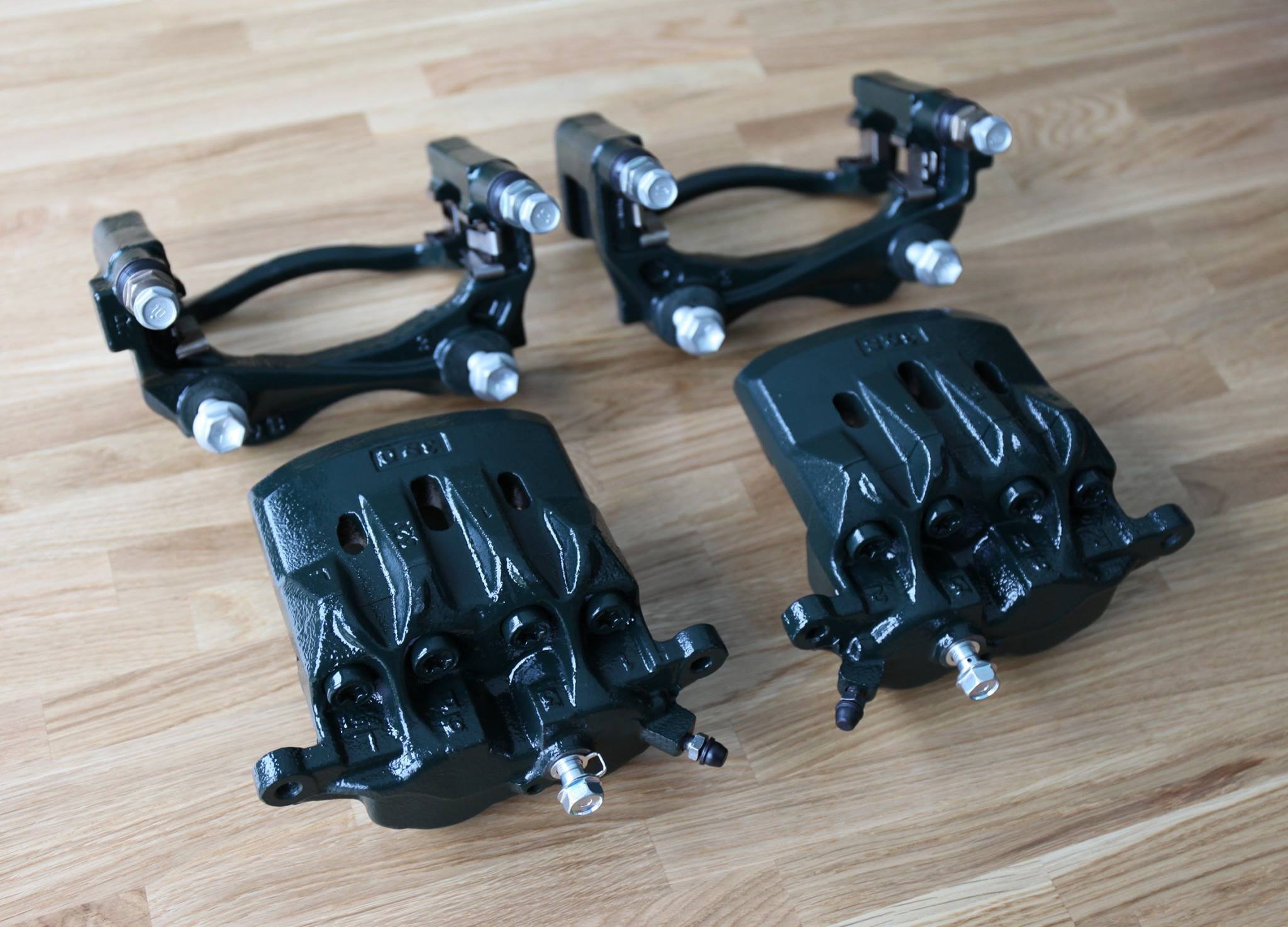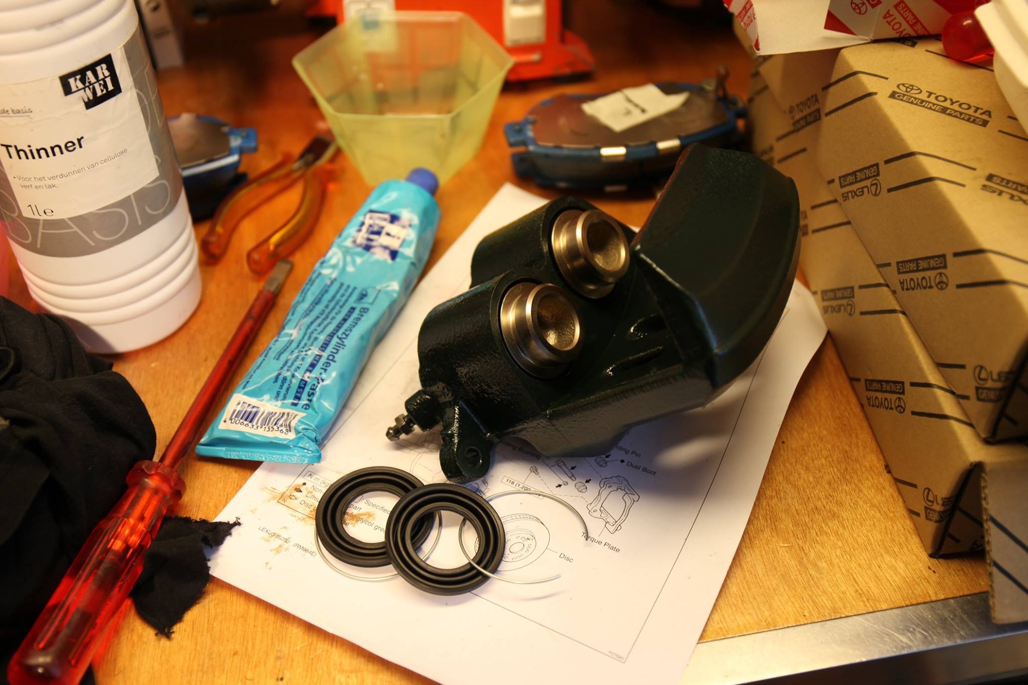 Hammerite standgroen hoogglans (spuitbus 400ml). Remschijf is voorzien van Hammerite zwart mat (spuitbus 400ml). Komt aardig dicht bij de originele kleur.