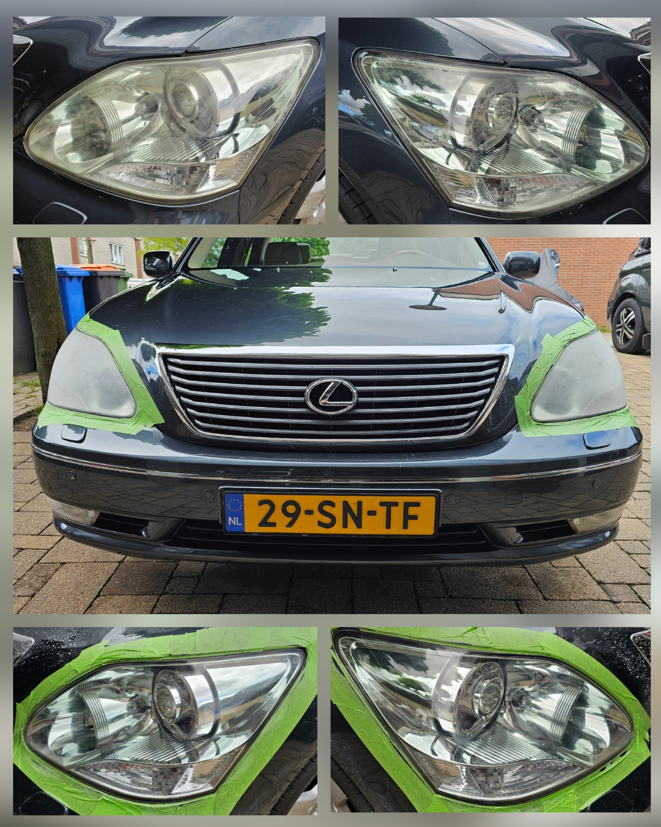 Dat heb ik vandaag ook gedaan met een setje van Maguire, met dit setje heb ik met de hand de koplampen gepolijst maar ze zijn lang niet zo mooi geworden als die van Bobster. Het was een van de dingen die ik wilde doen in mijn vakantie, eerder in m'n vakantie heb ik m'n LS met spul van Detailrs gewassen en in ceramische coating gezet en ben best tevreden over dit spul, hij heeft daar een mooie diepe glans aan overgehouden. Na de koplampen vandaag ook de binnenkant lekker aangepakt, ruiten gedaan, interieur schoongemaakt en leer gereinigd.