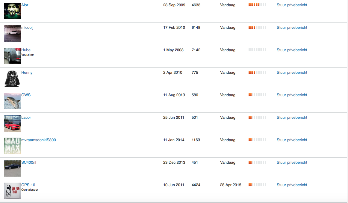 Op zich zou zo'n lijst niet verkeerd zijn, maar ik zit uit praktisch oogpunt te bedenken hoe die informatie verkregen wordt en belangrijker, hoe die bijgehouden moet worden. Eigenlijk zie ik dit meer als een taak voor Lexus zelf dan een fanforum, wij zitten namelijk niet in die communicatielijnen van Lexus. Maar als iemand zich geroepen voelt te proberen zal ik de laatste zijn die dat stopt.